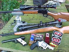 Author tested the ACU'RZR with several different loads in a Marlin Model 39 (top), a Remington Model 581 (center), a Ruger MK-512 (lower left), and a Smith & Wesson Model 317 AirLite (lower right).