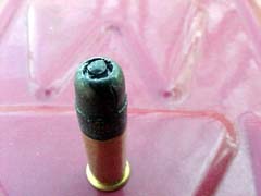 The Baby Scorp'n tool transforms a standard roundnose or flatnose bullet (such as the roundnose shown at right) into a very effective hollow point design with a center post similar to the centerfire "Hydra-Shok" design.